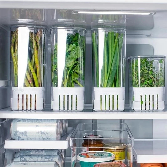 Pote Organizador 3 em 1 para Geladeira – Lave, Escorra e Armazene com Praticidade