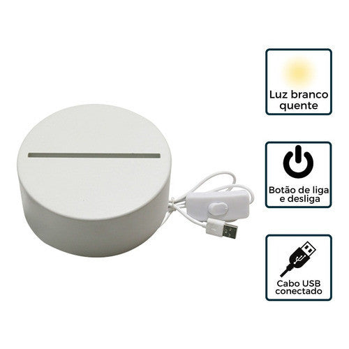 Graças a uma base com luz LED estrategicamente posicionada, o desenho gravado em acrílico ganha vida com um efeito visual tridimensional — uma verdadeira ilusão óptica.